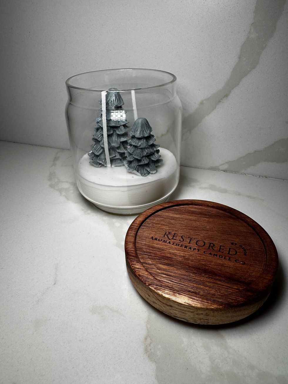 Candle Container: Our candles are housed in sleek clear glass and a dark wood top, giving a elegance that effortlessly complements any space's decor.